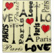 Diseño de texto de París para El día de San Valentín con formas de corazón rojo, Torre Eiffel y lámparas de calle con fondo amarillo