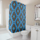 Esta es una cortina de ducha única, impresionante, de color negro, blanco y geométrico azul inspirada en la tela de barro.
