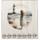 Una elegante joven vestida de blanco que recorre la orilla de arena, su gorra se inclinó contra la brisa mientras contemplaba un faro a rayas que se sostenía fuerte contra las olas. Gafas suaves enmarcan el primer plano mientras las aves marinas y un velero se deslizan por el horizonte, lo que añade un sentido de calma al paisaje costero. La suave acuarela combina el romanticismo y la serenidad, creando una atmósfera de costa atemporal inspirada en la cabaña, nostálgica y de ensueño. La IA generó obras de arte.