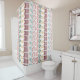 Esta cortina de ducha tiene un diseño de Boho de diferentes formas con líneas en varios colores.
