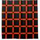 Este producto está hecho de un patrón cuadrado de neón naranja sobre un fondo negro.
