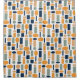 Esta cortina de ducha presenta un diseño moderno de ovarios y rectángulos en patrones que se repiten en el diseño.