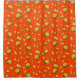 Cortina de ducha con hamburguesas voladoras sobre fondo naranja