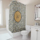 El diseño de esta cortina de ducha de diseño de leopardo se puede personalizar con las iniciales de tu familia.