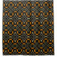 Un diseño bello, intrincado y geométrico de un nudo celta azul naranja y grisáceo sobre un fondo negro, con una textura moderna y metálica.