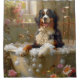 Arte con un juguetón perro de montaña de Bernese que disfruta de un relajante baño lleno de burbujas y hermosas flores. Esta encantadora obra de arte le da un toque de calidez y personalidad a su espacio, lo que le hace sentir más acogedor y alegre.