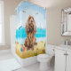 El perro lindo sentado en la playa es un regalo perfecto para alguien que ama esta raza de perro.