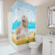 Un perro sabueso afgano sentado en la playa es una idea de regalo perfecta para alguien que ama esta raza de perro.