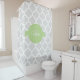 Añada un toque elegante a su baño con una cortina de ducha personalizada del Cuatrefoil verde. El diseño de la cortina de ducha presenta un sencillo fondo de quatrefoil y un elegante emblema para personalizar con su nombre y monograma. Artículos de regalo adicionales disponibles con este diseño así como una variedad de colores.