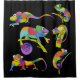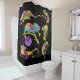 Añada un toque bonito y colorido a su cuarto de baño con esta cortina de ducha que cuenta con ilustraciones personalizados de camaleones en colores vivos y brillantes colocados sobre un fondo negro.