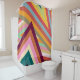 Esta cortina de ducha tiene un diseño retro de los años 70. Está recubierta por una capa vertical de Vs.
