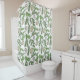 Esta cortina de ducha tiene un diseño invernal de varias ramas y dos tipos de pinecones.
