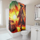 Esta cortina de ducha tiene un pirata fresco retratado en ella.