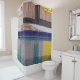 La fotografía original de ZoeSPEAK en esta cortina de ducha muestra una iguana relajante a lo largo de una piscina en los Cayos de Florida. Un borde de azulejos azul cobalto separa la escena de su reflejo en el agua acuática, donde un cartel en la valla de bambú hace una banda ancha de color amarillo a través de las ondas de la piscina.