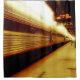 ¿Alguna vez has pensado que tu cuarto de baño está en el centro de la estación Grand Central? Ponga el número de la pista... En la fotografía original de ZoeSPEAK en esta Cortina de Ducha, los pasajeros en el desembarque de distancia del tren pararon en la pista 2. La luz solar brillante golpea la parte superior del brillante tren metalizado, y se puede ver un cartel con la fecha y la hora colgando bajo el techo del andén, con el resto del tren y el andén a la sombra.