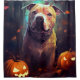 Cortina De Ducha Pitbull De Halloween Con Calabazas Asustadas