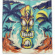 Relájese en el baño con esta fresca escena de la playa de tiki, con palmeras en la cortina de la ducha.