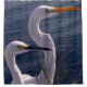 Esta Cortina de Ducha muestra una fotografía original de ZoeSPEAK de dos pájaros blancos de cuello largo posando junto a las aguas azules profundas del océano. El pájaro con el largo y puntiagudo pico negro es una garganta nevada. El pájaro con el largo y puntiagudo pico naranja amarillo es una gran garganta.