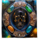 Cosmic Requiem, una visión artística de un cráneo semiprecioso que sale del cosmos.
