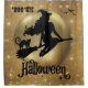 Eleva tu estilo de Halloween con esta cortina de ducha de aspecto purpurina dorado "bougie" con una bella bruja negra montada en su escoba frente a una luna dorada. La decoración perfecta de las bañeras para una elegante Halloween.