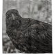 Una fotografía en blanco y negro de un pájaro negro con una expresión facial seria, probablemente preguntándose qué está pasando a su alrededor. Derechos reservados ©2019 Kimberly J Tilley.
