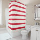 Cortina de ducha de rayas rojas y blancas para un cuarto de baño náutico bonito, moderno y elegante.