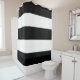 Deluxephotos ofrece la cortina de ducha blanca negra del modelo de las rayas. Disponible en otros colores, tamaños y/o estilos. Sea tienda de dinero elegante de la reserva en línea en mi tienda de Deluxephotos Zazzle.