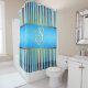Cortina de ducha con rayas azul turquesa, verde y blanca. Un diseño azul, monocromático, moderno, de moda y contemporáneo para realzar la decoración del cuarto de baño principal o de la habitación. Cambie el monograma, el color de fondo o simplemente disfrute del patrón. Set de toallas, alfombras de baño y accesorios disponibles.