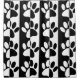 Patrón blanco y negro con patas y rayas de perro. Imagen decorativa para hogares, oficinas y negocios relacionados con perros.