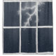 Vieja cristalera de madera con gotas de lluvia y relámpagos. Se puede cambiar el color de fondo.