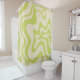 Patrón de resumen retro líquido en cortina de ducha verde y beige lima ligera. Diseño moderno contemporáneo con una estética minimalista boho de los años 90 de los años 70. Un poco trippy, con un ambiente animado y psicodélico. En suaves tonos pastel neutros. Por Kierkegaard Design Studio.