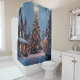Una plaza de un pueblo cubierta de nieve está bellamente decorada con un gran árbol de Navidad iluminado bajo una luna llena. Luces cálidas brillan desde las casas rústicas que bordean la calle, creando una atmósfera acogedora y festiva.
