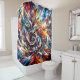 Esta cortina de ducha tiene un diseño abstracto.