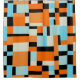 Patrón abstracto repetitivo original compuesto de formas rectangulares en un palet de cinco colores con negro. Este patrón se dibujó originalmente a mano y aunque se vectorizaron las formas mantienen su irregularidad natural. Crear un efecto preciso pero natural.