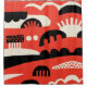 Un diseño abstracto audaz y original dibujado a mano en negro, rojo naranja y crema.