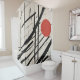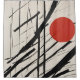 Un círculo rojo con líneas negras de espesor variable, sobre un fondo beige, crea una hermosa y abstracta representación del sol naciente. Arte sencillo, elegante y minimalista.