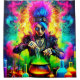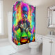Esta cortina de ducha tiene un balancín de punk haciendo una poción retratada en ella.