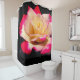 Esta cortina de ducha tiene un hermoso rosa retratado.