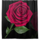 Cortina de ducha rosa roja sobre el diseño de fondo negro.