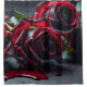 Las rosas negras y rojas en un fondo oscuro, con un pequeño chorrito de sangre, son perturbadoramente hermosas.