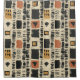 Earthy geometric pattern shower curtain inspired by tribal mudcloth textiles, featuring hand-painted rectangles, diamonds, and triangles in charcoal black and terracotta on a textured beige background. A warm boho design ideal for rustic décor lovers, artisan style fans, and anyone drawn to earthy geometric aesthetics.