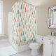 A cozy Scandinavian forest pattern shower curtain featuring hand-drawn trees in soft red, blue, and beige tones. This charming winter woodland design blends autumn warmth and Christmas cheer, perfect for seasonal projects and festive themes. Ideal for those who love modern rustic, minimalist, and cozy holiday styles.