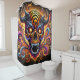 Esta cortina de ducha tiene un diseño de calavera aterrador.