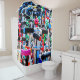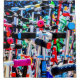 Paraíso de Scooter. Mezcla de barras de mango coloridas de scooters para niños mostradas en abundancia en el mercado al aire libre. Pintura de aceite simulada de una fotografía. Cortina de ducha para decorar el cuarto de baño para divertirse y estar de buen humor.