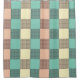 A seamless plaid pattern with alternating pastel squares in turquoise, cream, and beige. Each square is filled with a crisscross grid design, creating a vintage and orderly feel.