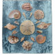 Esta es una mandala de conchas en un fondo de coral azul.