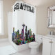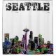 Las obras de arte al estilo de la calle son tendencia a la moda local. Esta divertida obra de arte presenta la ciudad de Seattle, Washington, cubierta de graffiti. Escoja un color de fondo diferente para complementar la decoración del baño.