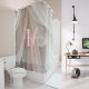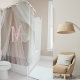 Cortina de ducha de seda blanca con monograma rosa en letra script elegante