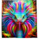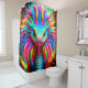 Esta cortina de ducha tiene una serpiente arco iris encima.