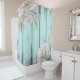Cortina de ducha de rosa de moda de campo Shabby con hermosos rosas acuáticos sobre un fondo rústico de madera azul verde azulada. Se puede añadir texto para personalizar esta cortina rústica de ducha de moda rústica de bonito.